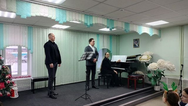 Перед учащимися выступил наш выпускник, заслуженный работник культуры Красноярского края, а также действующий солист Красноярского театра оперы и балета им. Д. Хворостовского Александр Михалёв, солист ансамбля «Виртуозы Красноярска» Максим Шилов и Светлана Михалёва.
