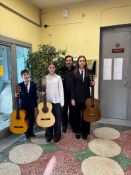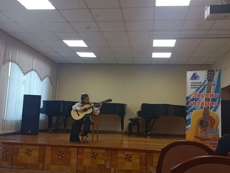 На конкурсе нашу школу в сольной номинации представляли Грицкевич Прохор и Сафонова Кристина, а в номинации «ансамбль» - ансамбль гитаристов «Аккорд» в составе: Щелконогова Карина, Мячина Алиса и Нураев Султан. Руководитель - преподаватель по классу гитары Титов Артем Михайлович.