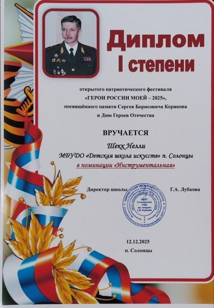 Детская школа искусств п. Солонцы много лет ежегодно принимает участие в этом фестивале. Этот год тоже не был исключением. От нашей школы в фестивале приняли участие Шекк Нелли и Мячина Варвара - учащиеся Людмилы Васильевны Гнатюк по классу баяна.