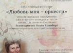 1 октября в «День музыки» в Красноярском колледже искусств им.П.И.Иванова-Радкевича состоялся юбилейный концерт «Любовь моя - оркестр». В исполнении оркестра народных инструментов ККИ им. П.И. Иванова-Радкевича под управлением заслуженного работника Красноярского края Ольги Гринберг.