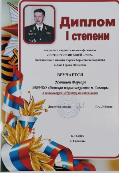 Детская школа искусств п. Солонцы много лет ежегодно принимает участие в этом фестивале. Этот год тоже не был исключением. От нашей школы в фестивале приняли участие Шекк Нелли и Мячина Варвара - учащиеся Людмилы Васильевны Гнатюк по классу баяна.